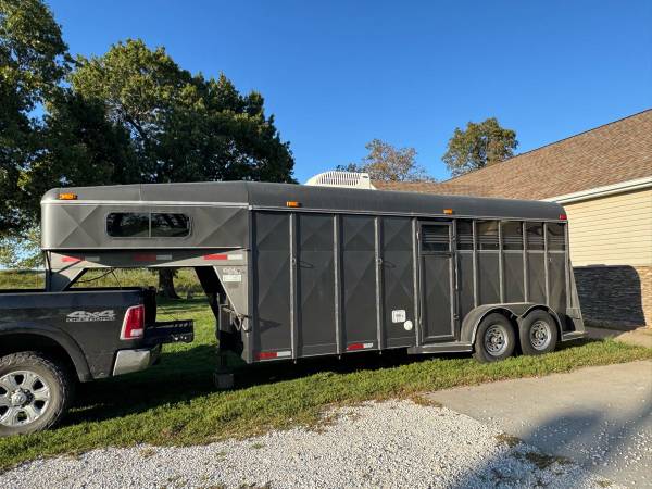 2010 custom Kodiak 2 horse slant gooseneck trailer. Excellent shape. Living quarters. Bed with pull out futon. Cowboy shower and camping toilet, both of which have never been used. The AC is cold!! Theres a tv and dvd. Has the side awning and a lifetime warranty on the rubber grooved floor! Tires are in great shape. Fantastic little trailer. Clean and clear title.